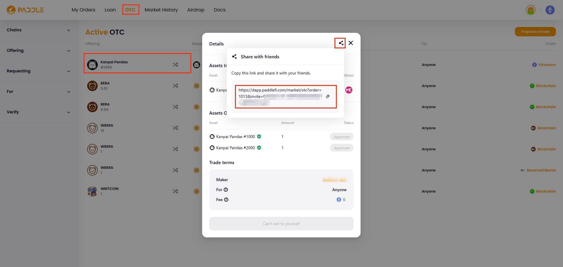 Once your order is live on the OTC marketplace, you can share it with anyone or directly with the counterparty you’ve already agreed with.